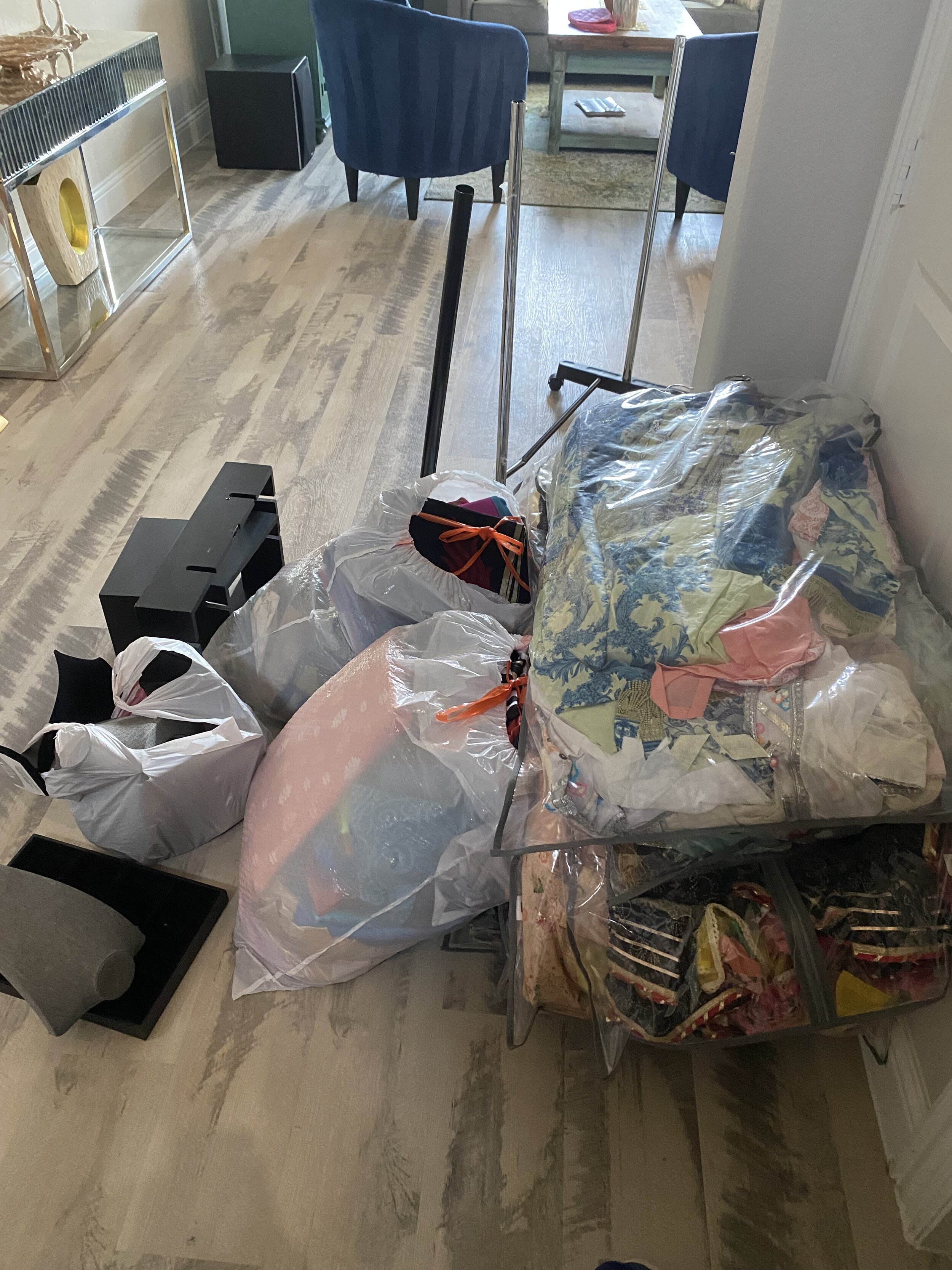 This client needed her business inventory unpacked. She did not need the clothes to be color coordinated, just for them to be grouped in the same category. This project took 5 hours. Learn more about our services.